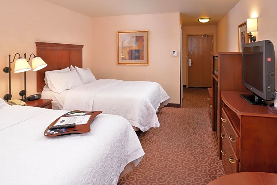 LCD HDTV, work desk, coffeemaker, free WiFi access This bright, comfortable room features two clean and fresh Hampton beds® and an entertaining 25-inch LCD TV with HD channels. Work in comfort at the large desk and stay connected with free WiFi access. Refresh yourself in the bathroom with plush towels and a shower featuring a curved shower rod for added space and light. The room also includes a coffeemaker - perfect for brewing that first coffee of the day.